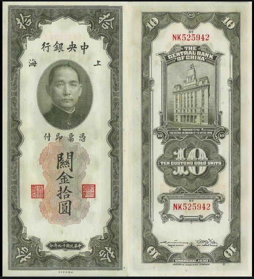 1930 par la banque centrale de Chine pour le