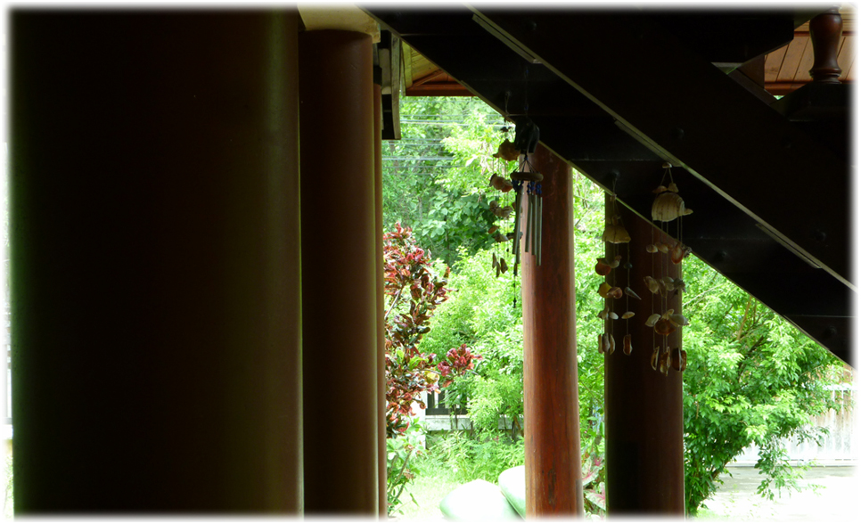 Une foret de pilotis dont certain en bois precieux dense soutient toute la maison.