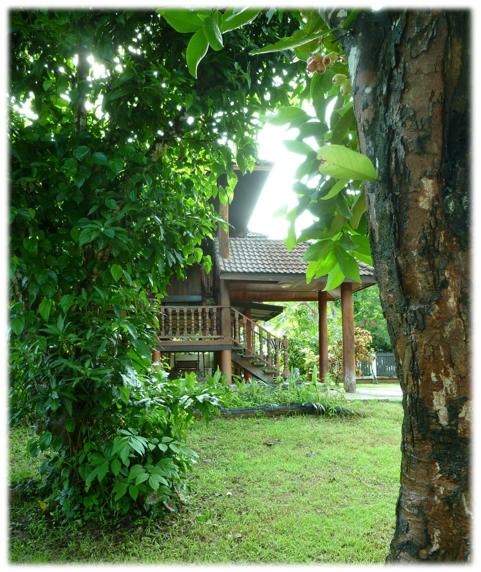 Le jardin produit pomme de rose, mangues, ramboutans... ainsi que les ingrediants pour la cuisine ; Basilic, kratiop, piment...